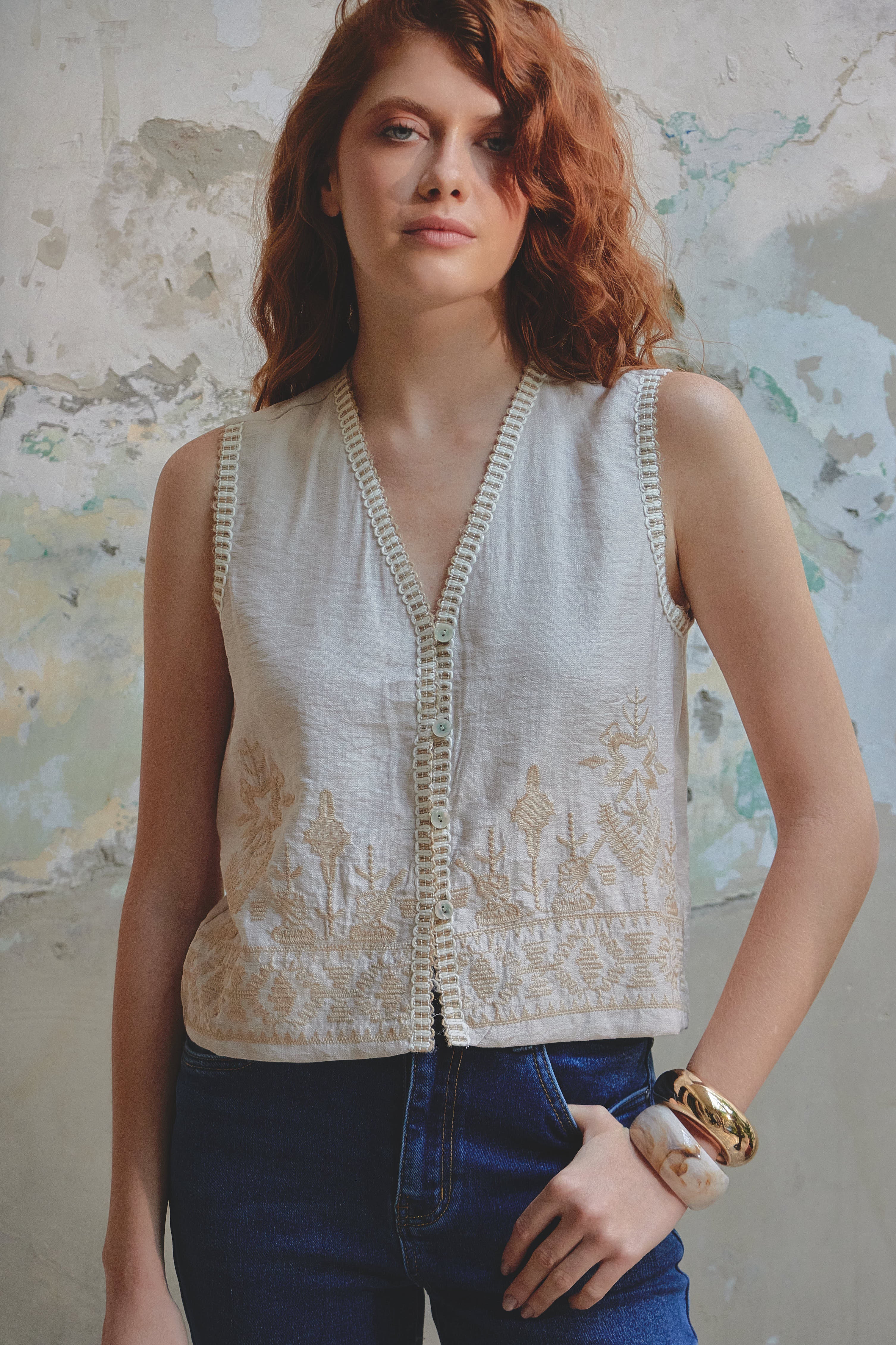 Tip de uso: Llévalo sobre una camisa de manga corta o directamente sobre la piel con pantalones tipo palazzo.