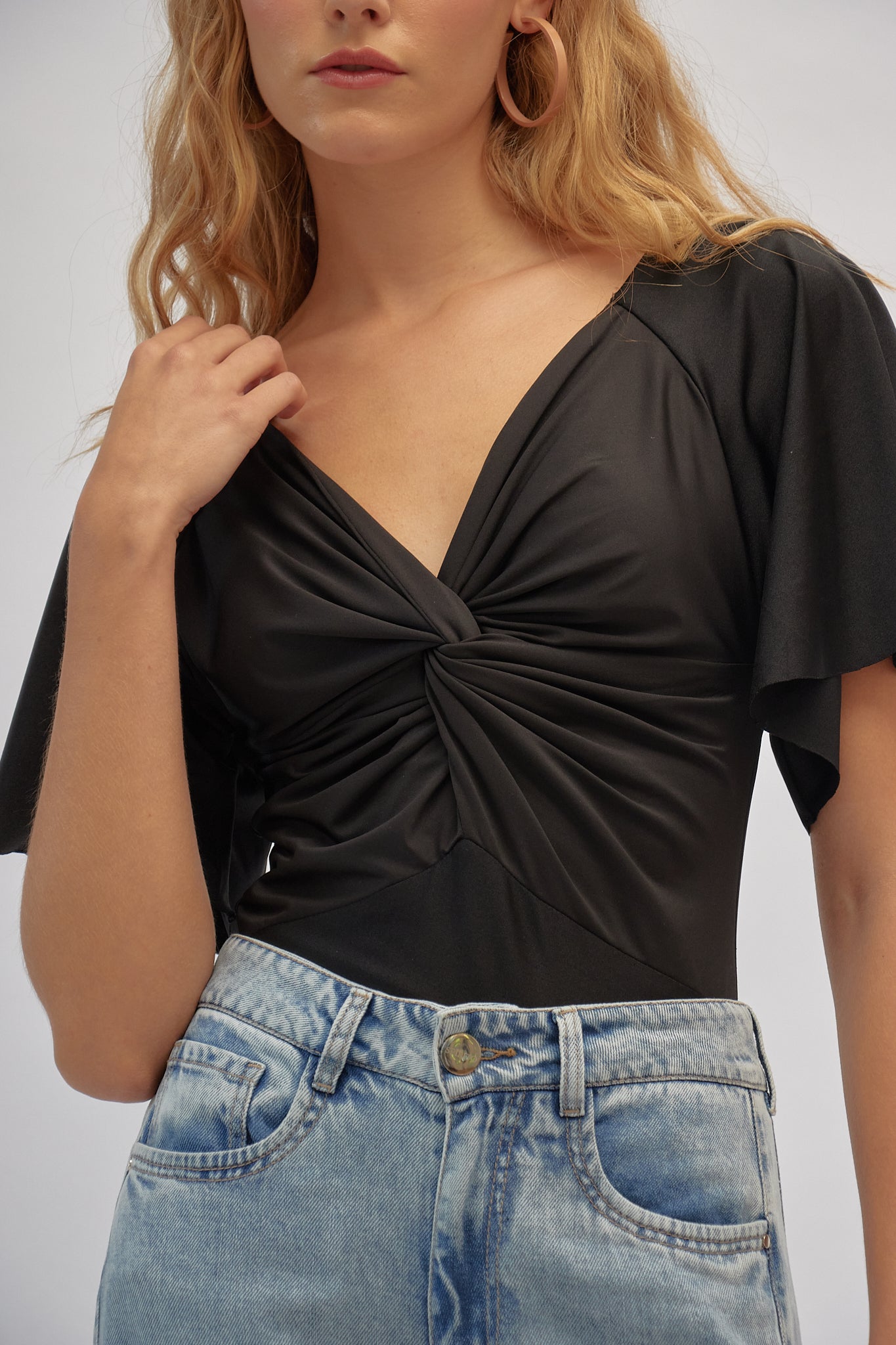 El Bodysuit Drapeado Naiara redefine la elegancia contemporánea con un diseño que equilibra romanticismo y sofisticación. Su escote en V y el drapeado cuidadosamente trabajado realzan la feminidad, mientras que las mangas en gola aportan un movimiento ligero y etéreo a cada paso. Su broche regulador en la parte inferior garantiza un ajuste perfecto y cómodo, adaptándose a ti en cada momento. Ideal para mujeres que buscan destacar con sutileza, irradiando seguridad y belleza natural.