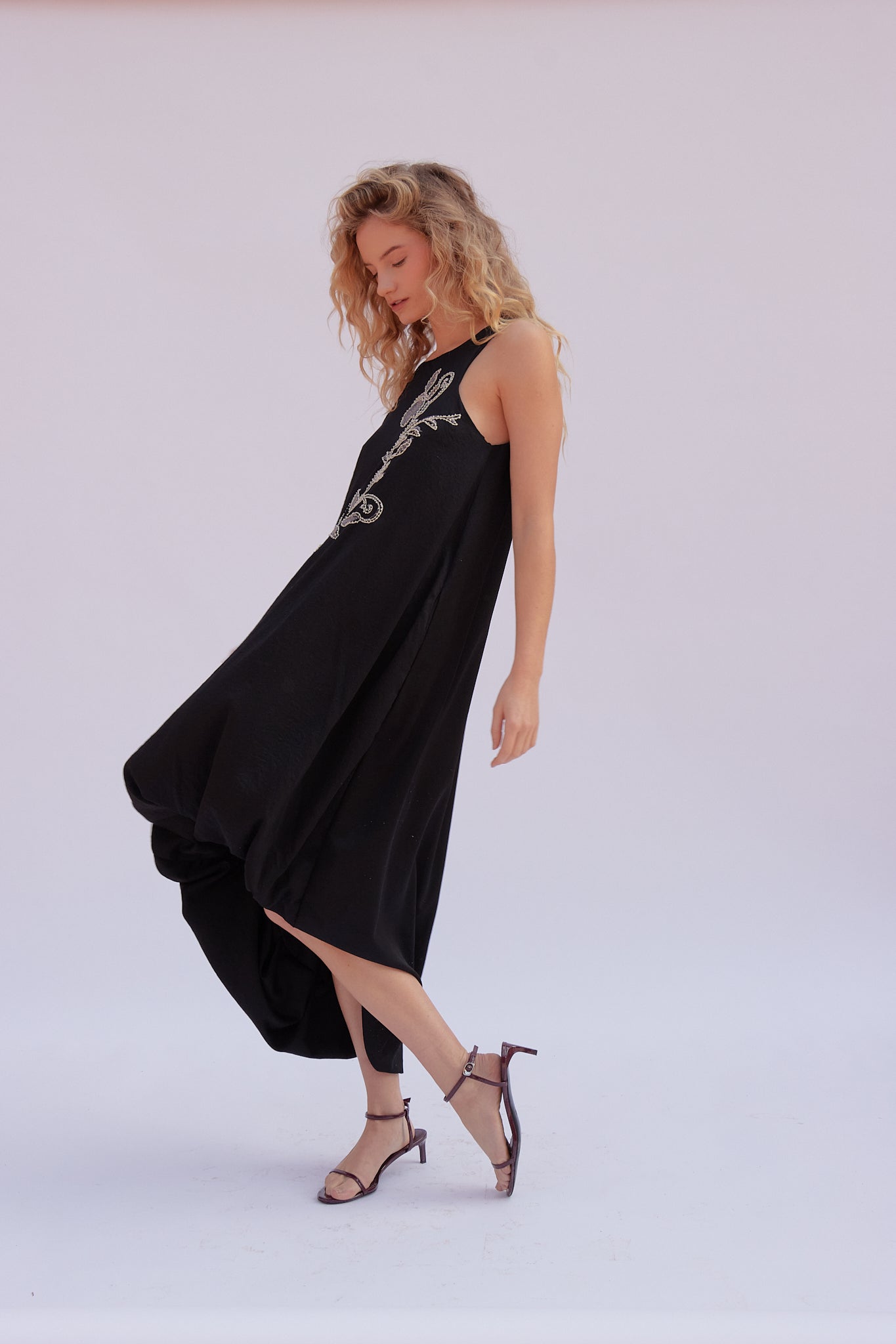 Nuestro Vestido Ísis define la sofisticación contemporánea con una silueta midi que irradia elegancia atemporal. Este vestido midi globo negro es una pieza statement que incorpora un delicado estampado y bordado, añadiendo una textura rica y un toque de glamour discreto. Su diseño práctico con bolsillos funcionales en costados lo hace ideal para la mujer SPIRITO.